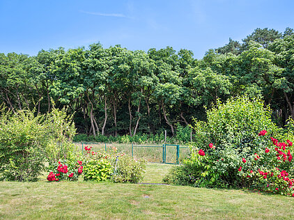 Der weitläufige Garten ist komplett umzäunt und bietet viel Platz zum Spielen und Verweilen. Zu jeder Tageszeit finden Sie dort sowohl sonnige als auch schattige Plätzchen.“