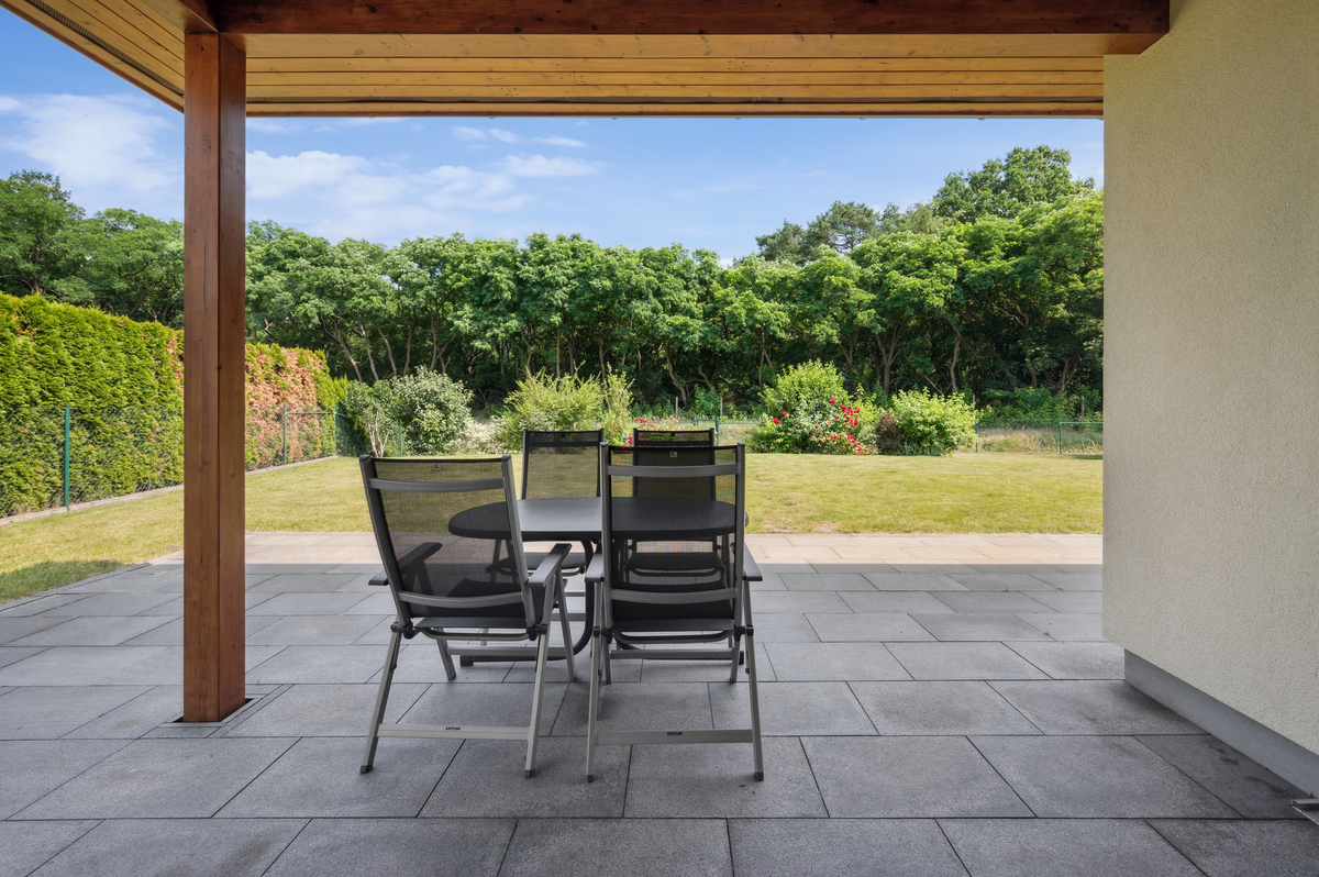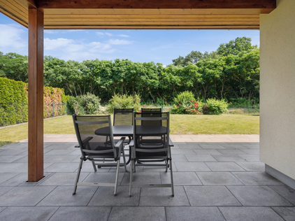Unser Haus bietet mit seinen 3 Schlafzimmern Platz für bis zu 6 Personen. Max. 2 Hunde sind ebenfalls herzlich willkommen. Genießen Sie gemütliche Stunden in unserem lichtdurchfluteten Wohn-Essbereich, von dem aus Sie auf die teilweise überdachte Terrasse und den weitläufigen Garten mit herrlichem Blick auf den Wald treten.